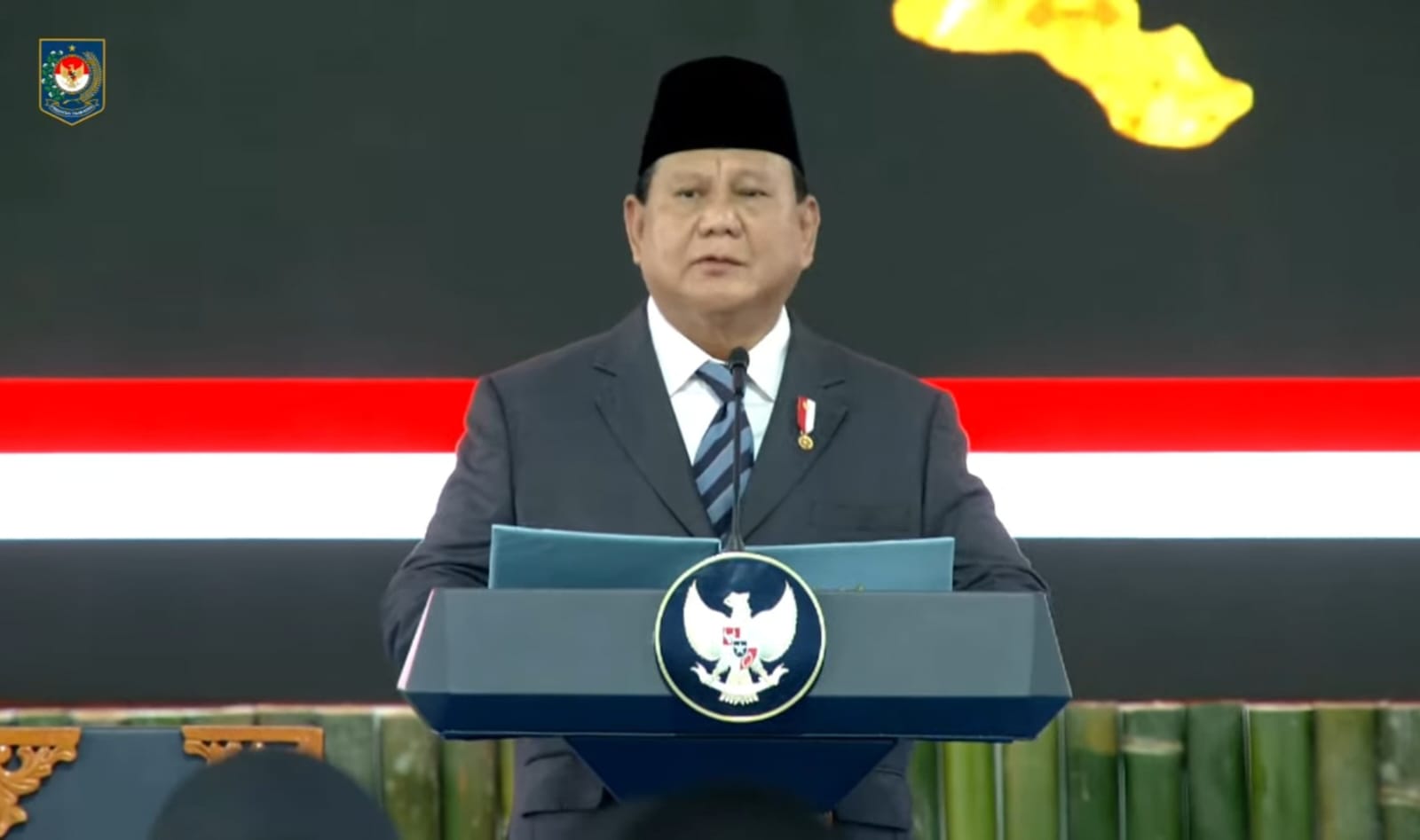 Sesampainya di Istana Negara, Presiden Prabowo Subianto memimpin langsung upacara pelantikan. Prabowo juga menyampaikan amanat secara langsung dalam upacara pelantikan tersebut.