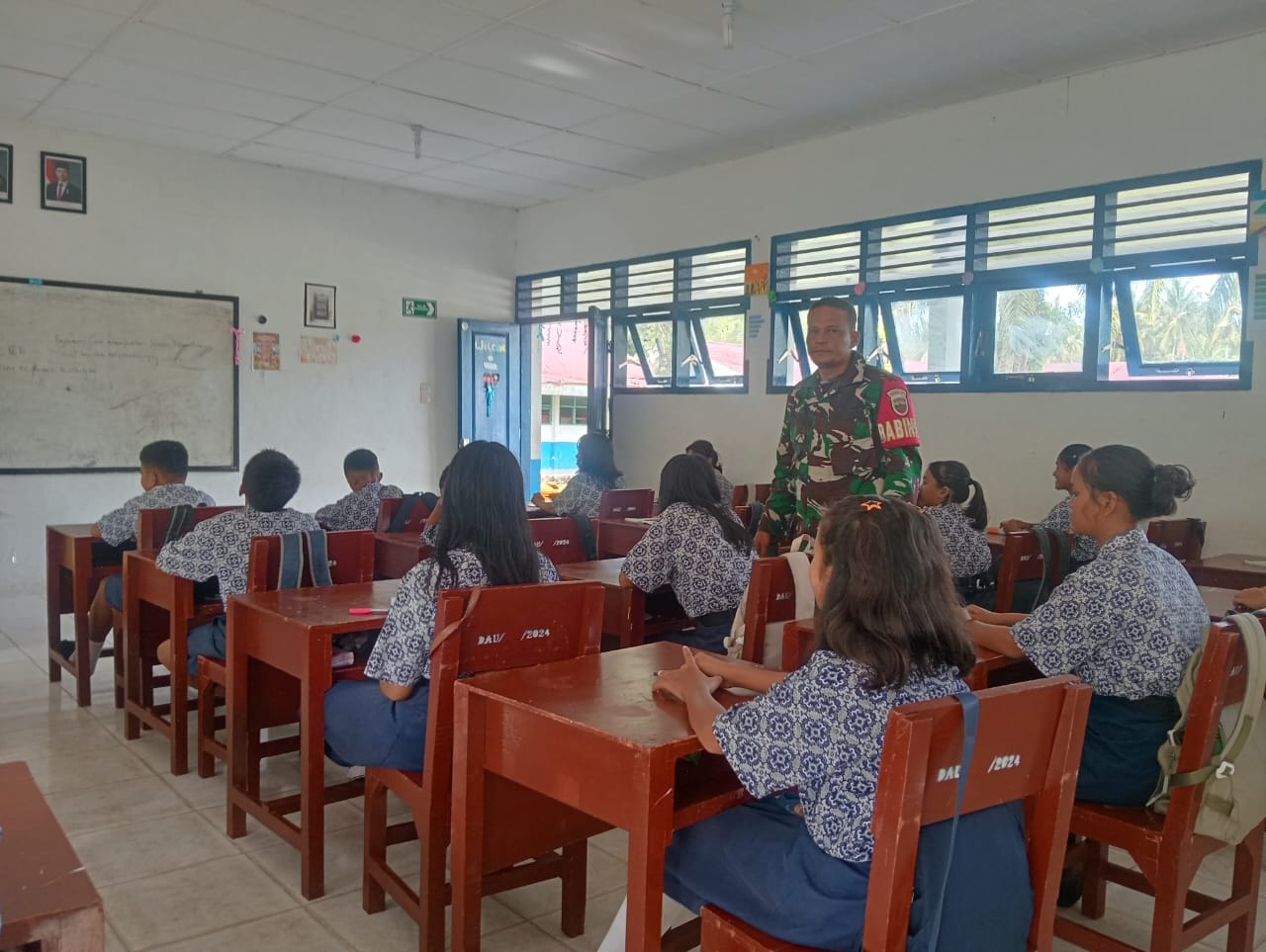 TAPTENG_Babinsa Koramil 02/Sorkam Serda.Rianto.Aritonang. Melaksanakan Komsos dengan Siswa SMPN2.Sorkam. Kecamatan Sorkam. dengan memberikan Arahan tentang menjadi Anak yang disiplin dan jauhi Narkoba Sejak Dini.Tepatnya di dalam ruang kelas.yang bertempat di kelurahan.Naipospos Barat. Kecamatan Sorkam. Kabupaten Tapanuli Tengah.
