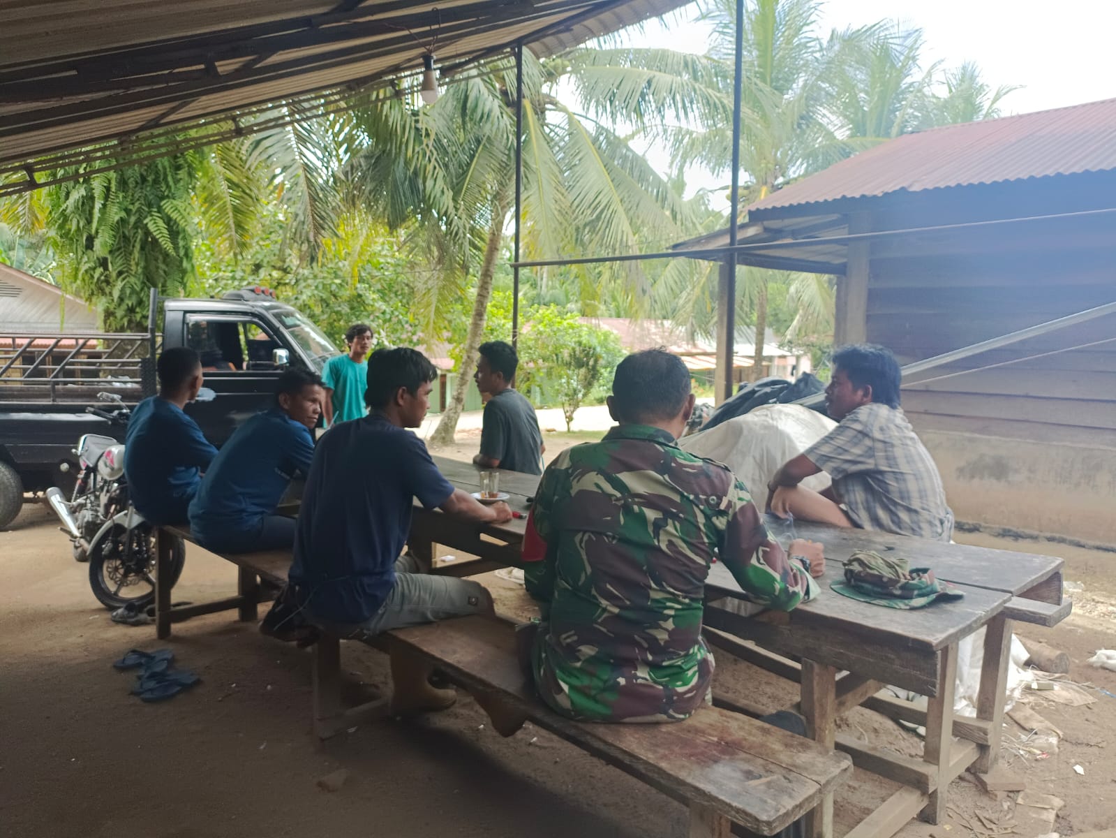 TAPTENG- Komunikasi Sosial (Komsos) bersama warga binaan. Sekaligus menjadi wahana untuk saling mendekatkan diri, bersilaturahmi, dan membangun hubungan emosional dengan tujuan menciptakan kedekatan TNI dengan rakyat. Hal tersebut diungkapkan Sertu Ak.manik Babinsa Koramil 02/ Sorkam ,saat ditemui di salah satu warung kopi tepatnya di Desa rianiate, Kecamatan Sorkam Kabupaten Tapanuli Tengah, jumat(10/04/26).