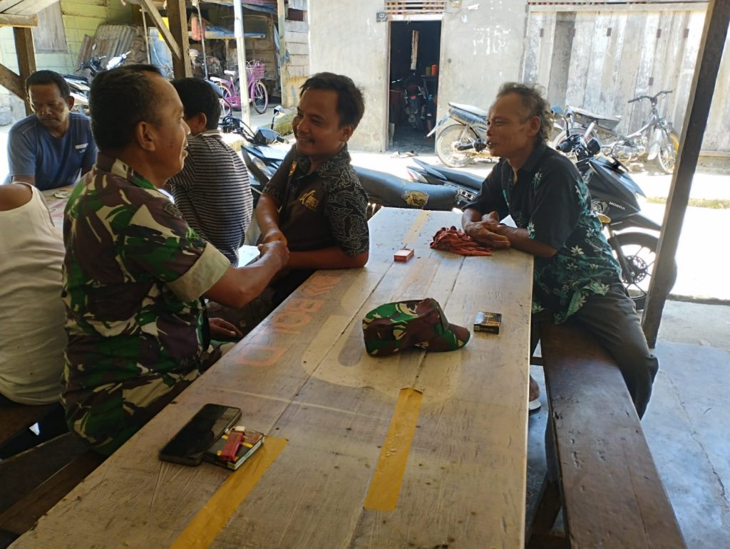 TAPTENG_Babinsa Koramil 03/Pandan Kodim 0211/TT Sertu Bangun Tanjung melaksanakan Komunikasi Sosial (Komsos) bersama masyarakat di Warung Jln. Padang Sidempuan Kelurahan Kalangan, Kecamatan Pandan Kab. Tapanuli Tengah. Rabu(09/07/2025)