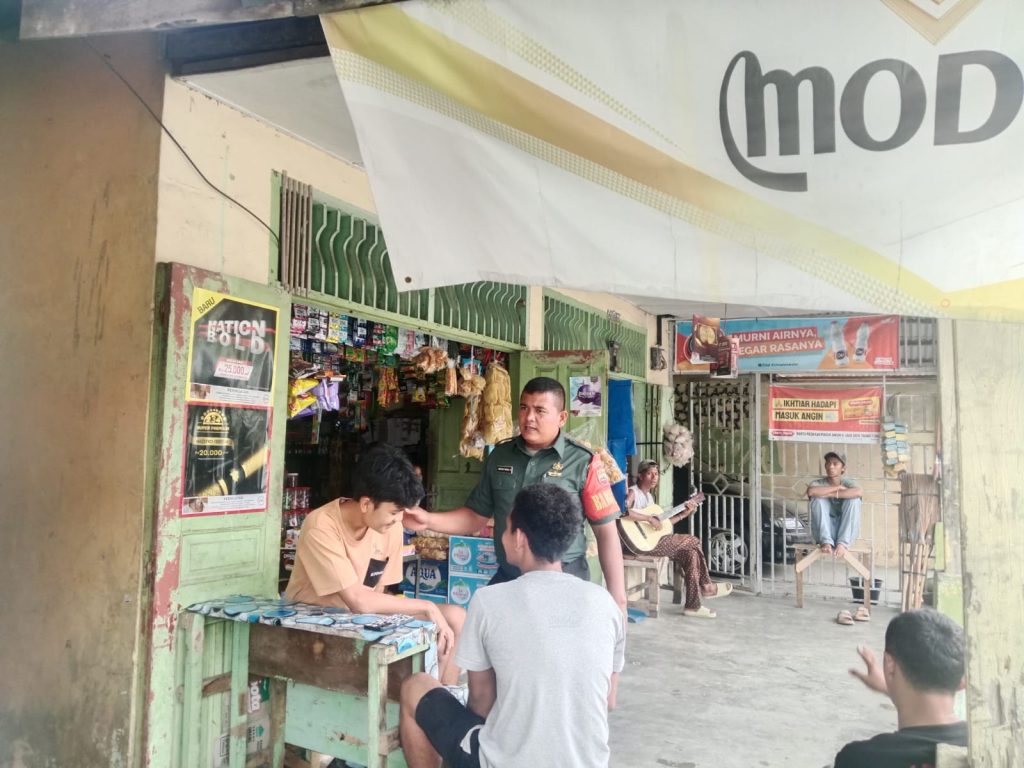 Tapteng_Babinsa Koramil 03/Pandan Koptu K T Marbun Melaksanakan Komsos (Komunikasi sosial) dengan tokoh Pemuda di Kelurahan Hajoran, kecamatan Pandan. Kabupaten Tapteng Kamis (03/07/2025).