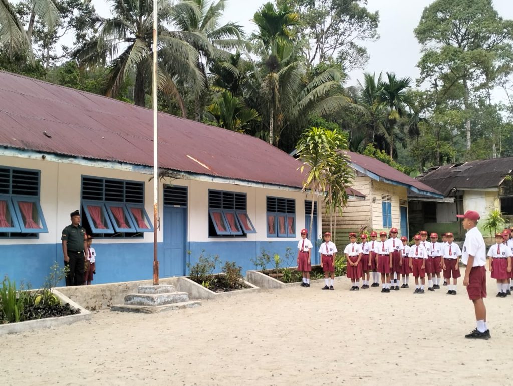 Tapteng – Babinsa Koramil 05/Kolang Kodim 0211/TT Serda Ius Pasaribu menjadi Pembina Upacara pada upacara pengibaran Bendera Merah Putih di SD Negeri Impres 155685 Bonan Dolok II, Desa Bonan Dolok, Kecamatan Sitahuis, Kabupaten Tapanuli Tengah. Senin(28/04/2025)