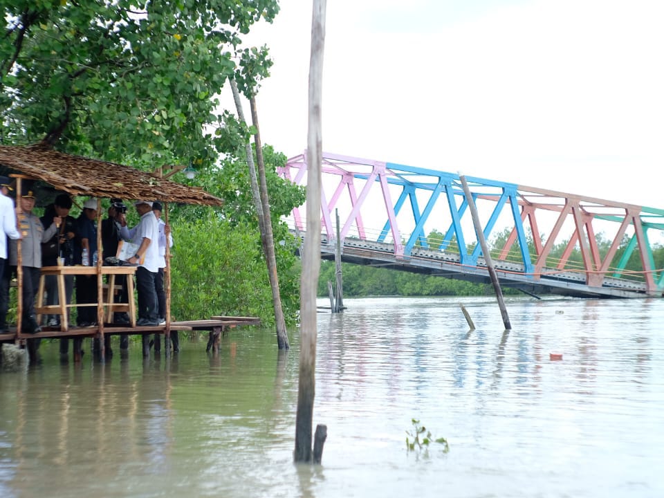 Rangkaian kegiatan dilanjutkan dengan peninjauan Jembatan Panglima Sampul, salah satu infrastruktur penting yang sedang dibangun dan menjadi prioritas dalam mendukung konektivitas antarwilayah di Kepulauan Meranti.