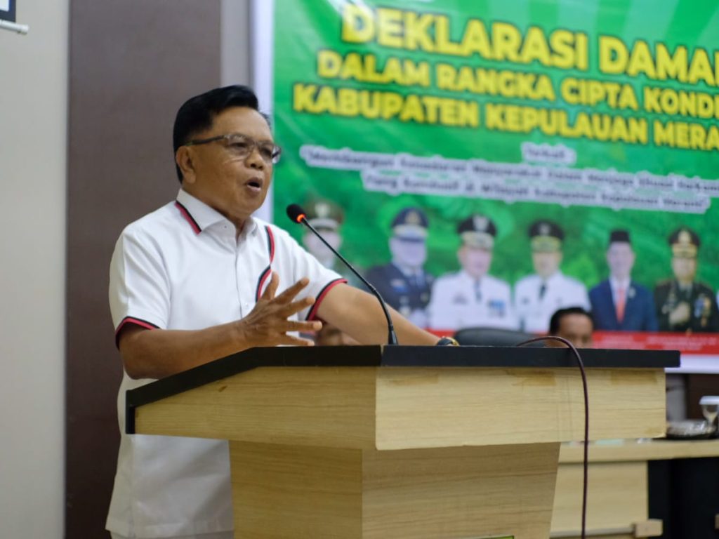 Sidik24jam – MERANTI – Bupati Kepulauan Meranti, AKBP (Purn) H. Asmar, secara resmi mencanangkan Deklarasi Damai dalam rangka membangun kesadaran masyarakat untuk menjaga situasi keamanan dan ketertiban masyarakat (harkamtibmas) yang kondusif di wilayah Kabupaten Kepulauan Meranti.