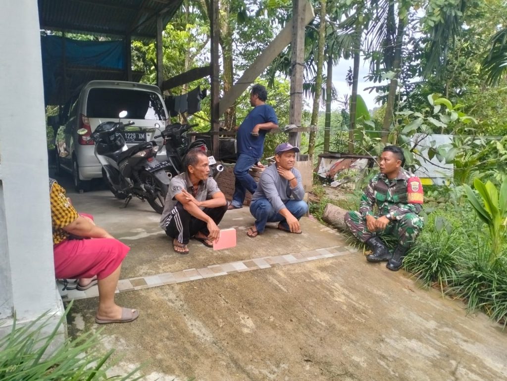 Serda Ius Pasaribu mengatakan kegiatan ini merupakan salah satu bentuk silaturahmi Babinsa dengan masyarakat yang ada di wilayah binaan, sambil bercerita Babinsa dapat menyerap informasi dari warga terkait informasi yang berkembang di wilayah binaan.