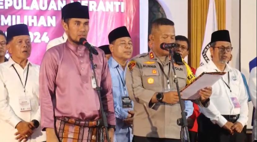 Sidik24jam. MERANTI- Polres Kep Meranti mengerahkan sembilan puluh enam (96) personilnya melalui cooling system dalam pengamanan pengundian nomor urut Bacalon Bupati dan wakil bupati, deklarasi damai pemilu serta deklarasi dan komitmen bersama kampanye berkeselamatan Paslon Pilkada 2024.