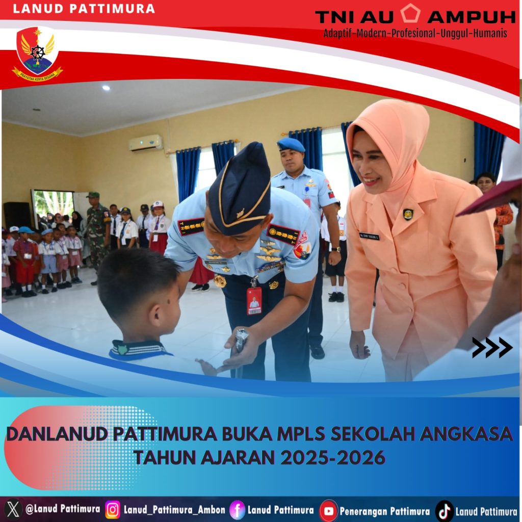Ambon Sidik24jam,com-Lanud Pattimura. Sekolah Angkasa Lanud Pattimura secara resmi membuka kegiatan Masa Pengenalan Lingkungan Sekolah (MPLS) Tahun Ajaran 2025-2026 di Gedung Luhukay Lanud Pattimura Ambon, pada Selasa (15/7/2025). Kegiatan dibuka dengan penuh semangat melalui upacara yang dipimpin langsung oleh Komandan Lanud Pattimura, Kolonel Pnb Sugeng Sugiharto, S.Sos., M.M selaku Pembina Yasarini Pengurus Cabang Lanud Pattimura.