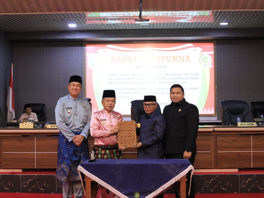 Bupati Kepulauan Meranti, H. Asmar, secara resmi menyampaikan Rancangan Peraturan Daerah (Ranperda) tentang Rencana Pembangunan Jangka Menengah Daerah (RPJMD) Kabupaten Kepulauan Meranti Tahun 2025–2029 kepada DPRD untuk dibahas bersama.