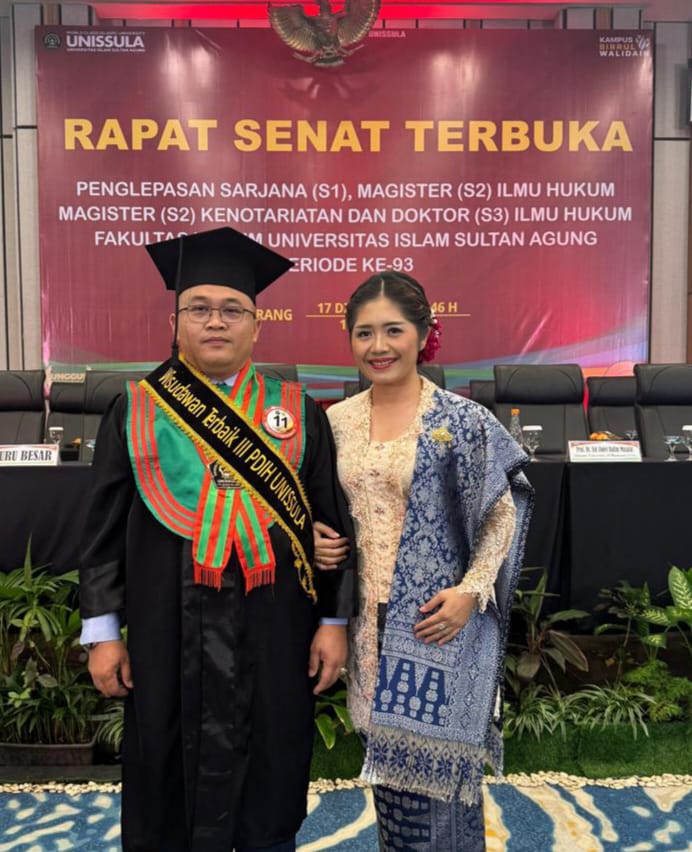 Semarang – Ketua Pengadilan Negeri (PN) Pelalawan, Dr. Andry Simbolon SH, MH resmi meraih gelar doktor dari Program Pascasarjana Universitas Islam Sultan Agung ( UNISSULA) Semarang, dengan predikat summa cumlaude dengan IPK 3,93, pada hari Sabtu, tanggal 14 Juni 2025.