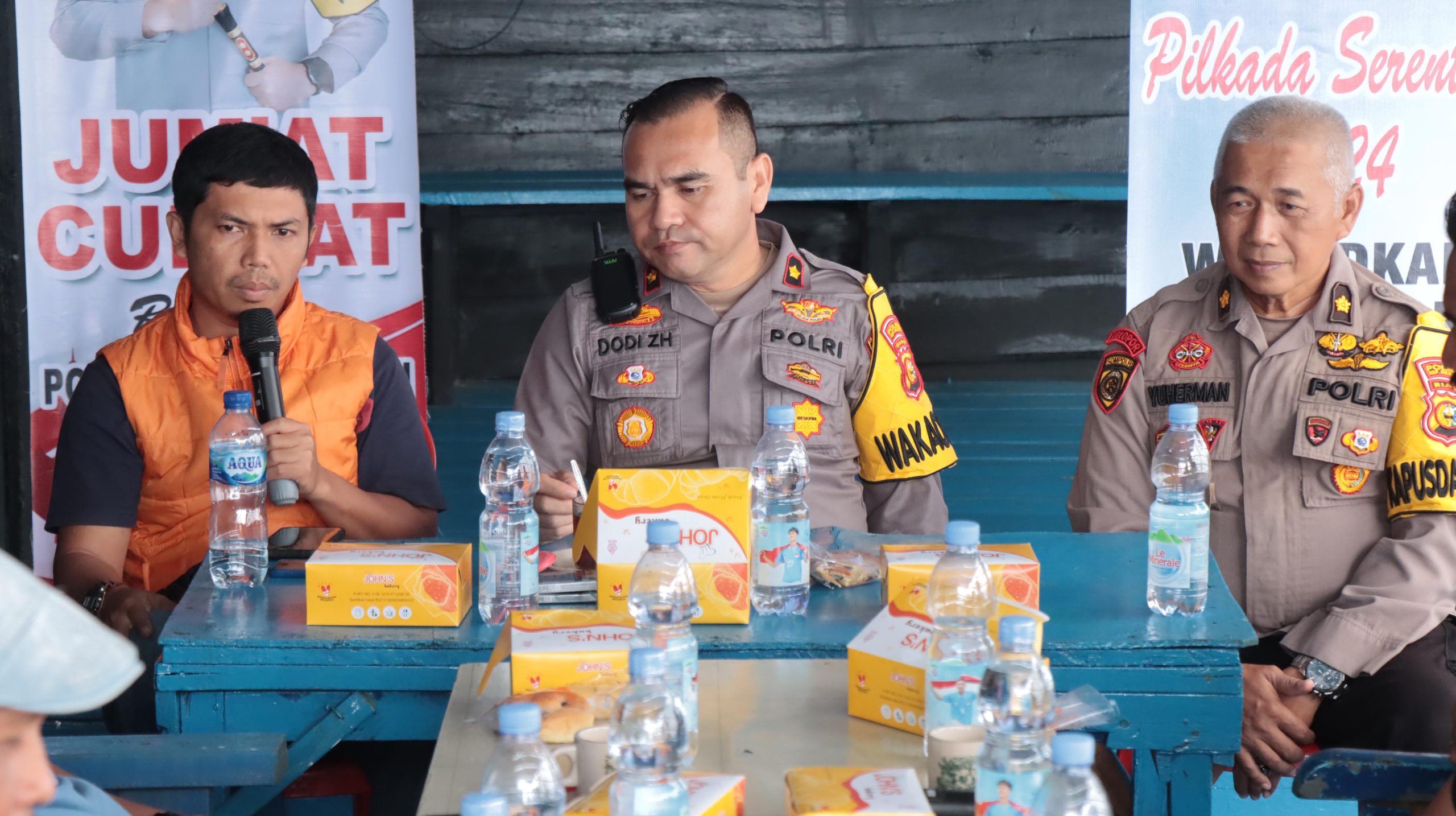 Dilanjutkan Kompol Dodi Zulkarnain, pada kegiatan Jumat Curhat Cooling System ini Kami dari Kepolisian siap menjaga dan memastikan agar setiap kegiatan pemilukada berlangsung kondusif.