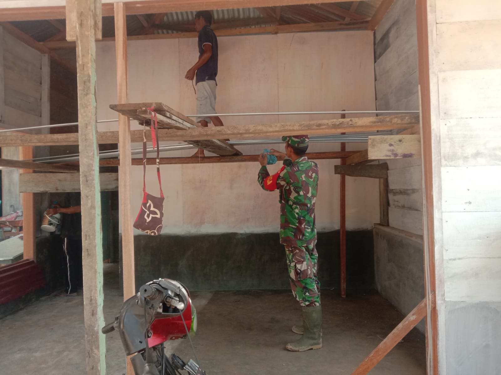 Komsos Babinsa Koramil 04/Pinangsori, dalam membantu warga membangun pemasangan dinding dan plafon rumah merupakan bentuk mempererat Silahturahmi, dan menjaga Kekompakan, dalam bekerja dan sekaligus meringankan beban warga binaan.