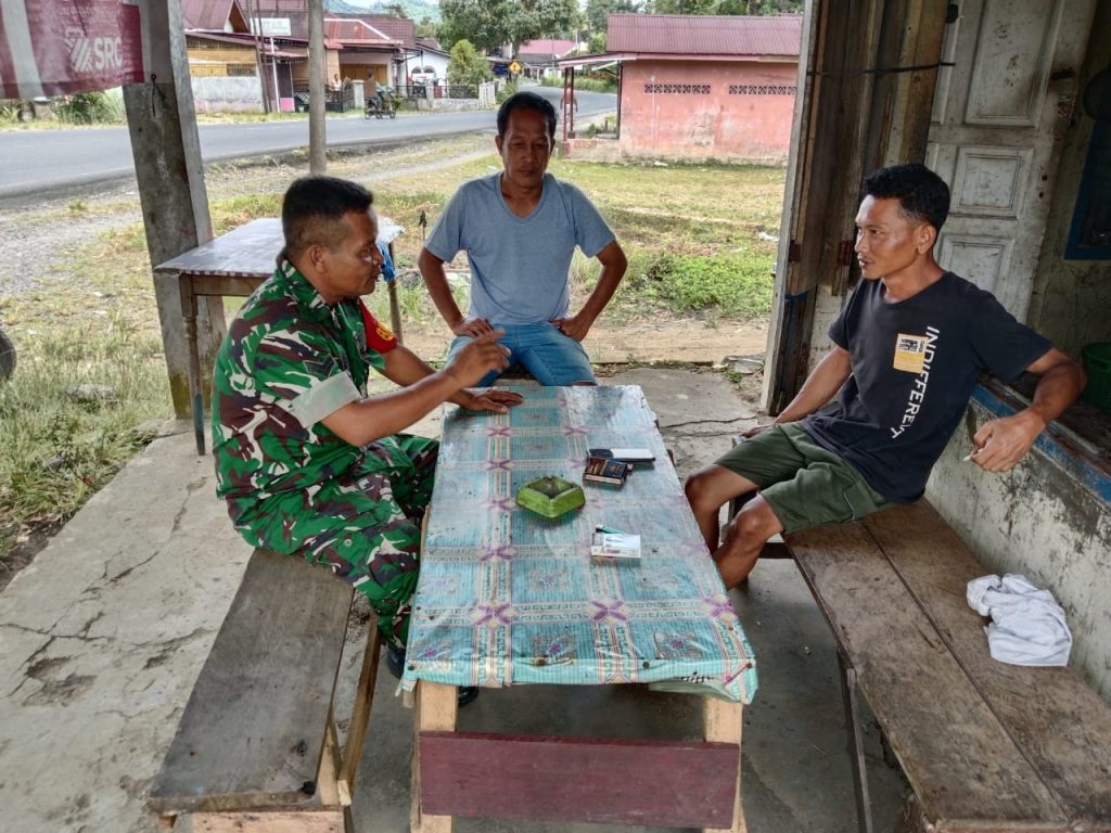 Pinangsori_Dalam membina kebersamaan dengan warga binaan, Sertu Umar B sagala Babinsa Koramil 04/pinangsori melaksanakan kegiatan Komunikasi Sosial (Komsos)bersama Masyarakat yang bertempat di Desa Gunung marijo Kecamatan Pinangsori Kabupaten Tapanuli Tengah.