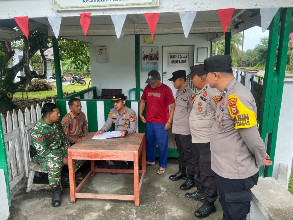 Sidik24jam. Meranti – Kapolsek Merbau, Polres Kepulauan Meranti, AKP Jimmy Andre SH MH, bersama anggota melaksanakan kunjungan ke Pos Satuan Keamanan Lingkungan (Satkamling) di RW IV Desa Bagan Melibur, Kecamatan Merbau, Rabu (17/9/2025).
