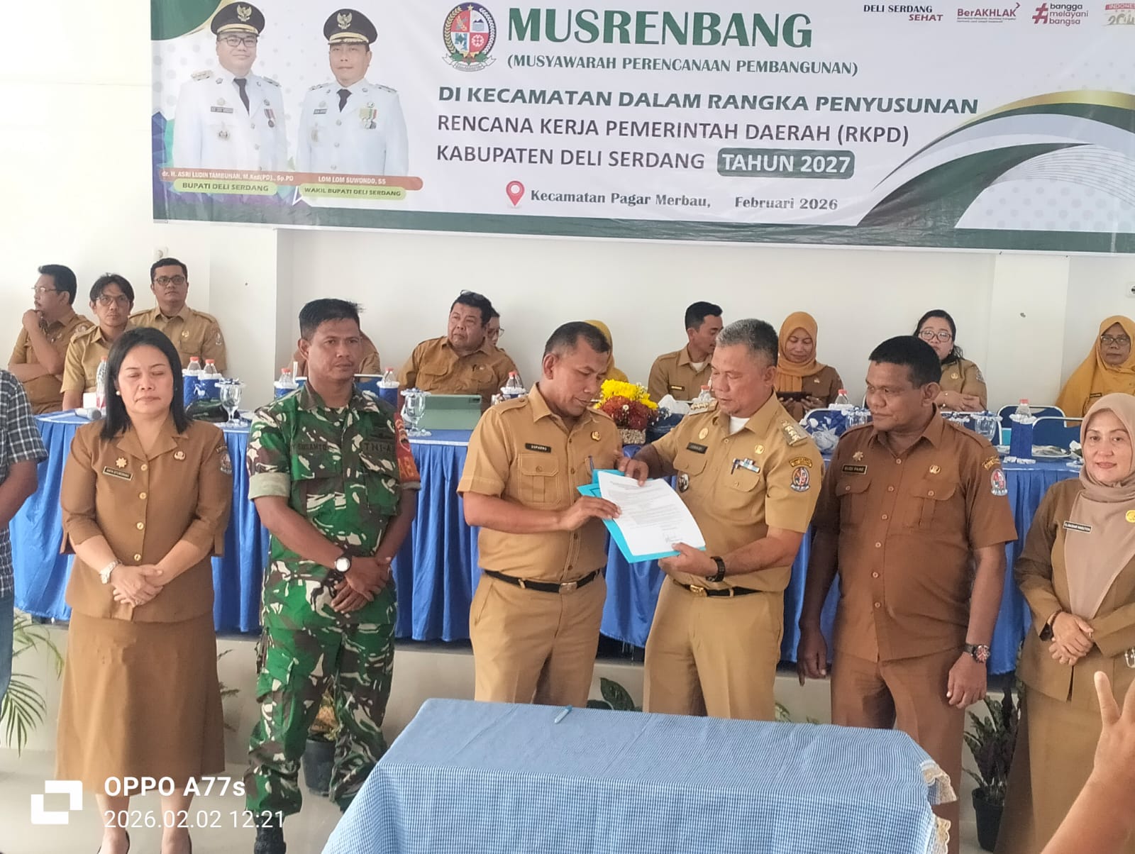 Musrenbang tahun 2027 dihadiri, Kepala Dinas Pendidikan Suparno, Kepala Dinas PMD Anita Situmorang, Kepala Dinas Disnaker Kabupaten Setia Budi Pane, Kepala Dinas Pertanian Elina Sari Nasution, SP., MM, Camat Kecamatan Pagar Merbau Junaidi, SE. , Danramil 06/LP yang diwakilkan Serka Edi Susanto, Kapolsek Pagar Merbau yang diwakilkan Kanit Intel Aiptu Sanser Purba, Kapus Puskesmas Pagar Merbau