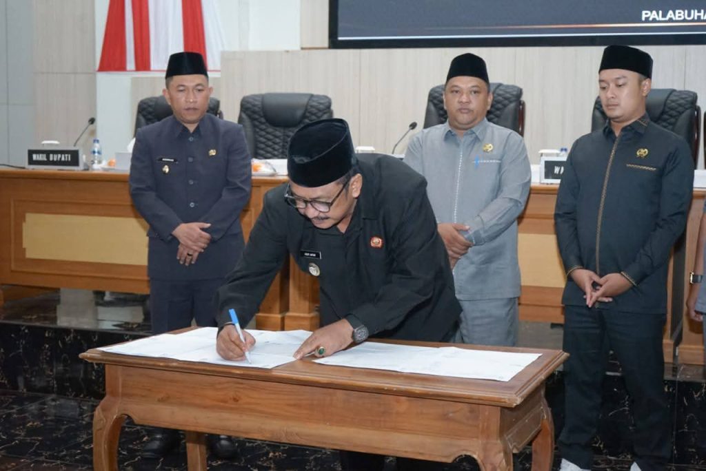 Sidik24jam.com – Bupati Sukabumi H. Asep Japar didampingi Wakil Bupati H. Andreas menghadiri rapat Paripurna DPRD agenda pengambilan keputusan atas raperda tentang RPJMD Kabupaten Sukabumi tahun 2025-2029 dan penandatanganan nota kesepakatan perubahan Kebijakan Umum Anggaran (KUA) dan Prioritas Plafon Anggaran Sementara (PPAS) tahun anggaran 2025. Sidang berlangsung di ruang rapat paripurna DPRD Kabupaten Sukabumi, Senin (21/7/2025).