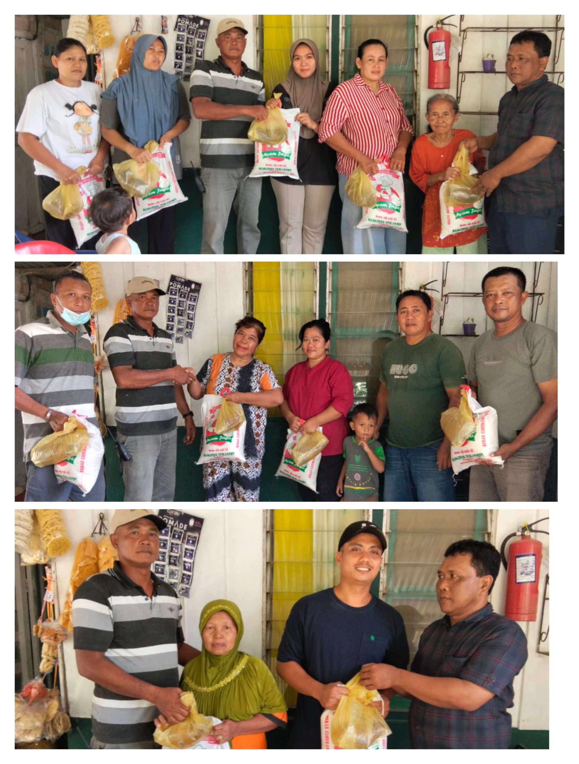 Adapun bantuan yang disalurkan berupa beras 5 kilogram dan minyak makan 1 liter untuk setiap kepala keluarga penerima.