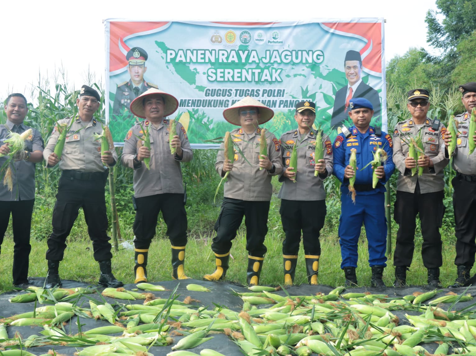 Kegiatan panen raya jagung berlangsung di Polres Kepulauan Meranti Jalan Gogok Darussalam, Desa Gogok Darussalam Kecamatan Tebing Tinggi Barat, Kabupaten Kepulauan Meranti.