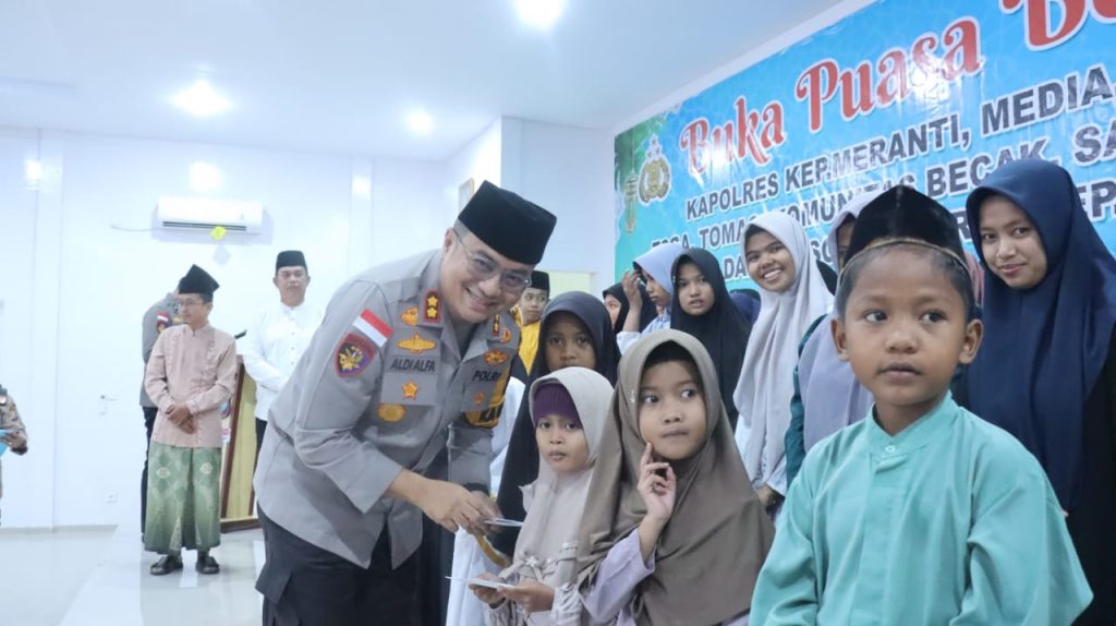 sidik24jam. Meranti ,– Kapolres Kepulauan Meranti Aldi Alfa Faroqi menggelar kegiatan buka puasa bersama dengan berbagai elemen masyarakat sekaligus memberikan santunan kepada anak yatim, Jumat (13/3/2026).