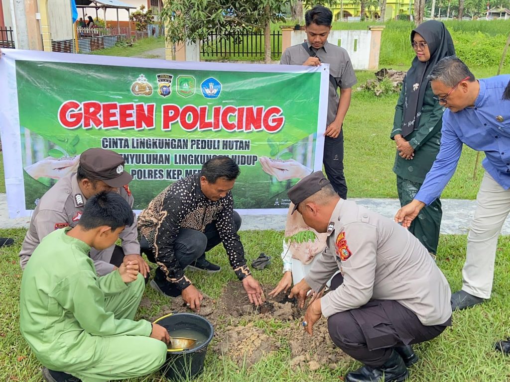 Sidik24jam. Meranti– Tanggal 7 dan 8 Agustus 2025, kegiatan GREEN POLICING Polres Kep. Meranti berupa kegiatan Sosialisasi edukasi peduli lingkungan dan kegiatan penanaman bibit pohon kembali dilakukan ditiga sekolah yaitu TK Fathimah Desa Gogok Darussalam Kec. Tebing Tinggi Barat, TK AISYAH dan SD N 13 Selatpanjang Kec. Tebing Tinggi Kab. Kep. Meranti.
