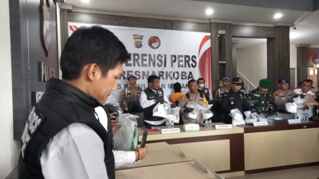 Saat Konferensi Perss Kapolres AKBP Kurnia Setyawan SH, SIK Menerangkan Sabu-sabu dengan berat bersih sebanyak 15,6 kilogram behasil di amankan, dan ini merupakan keseriusan pihak kepolisian dalam memberantas narkoba.