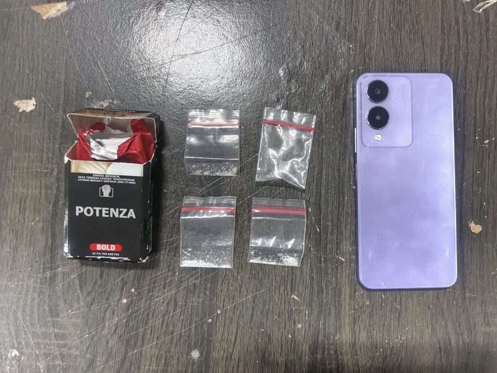 Barang bukti yang ditemukan di tangan G cukup signifikan yaitu tiga saset sedang berisi kristal bening diduga sabu, satu saset kosong ukuran sedang, satu bungkus rokok dan satu unit handphone android.